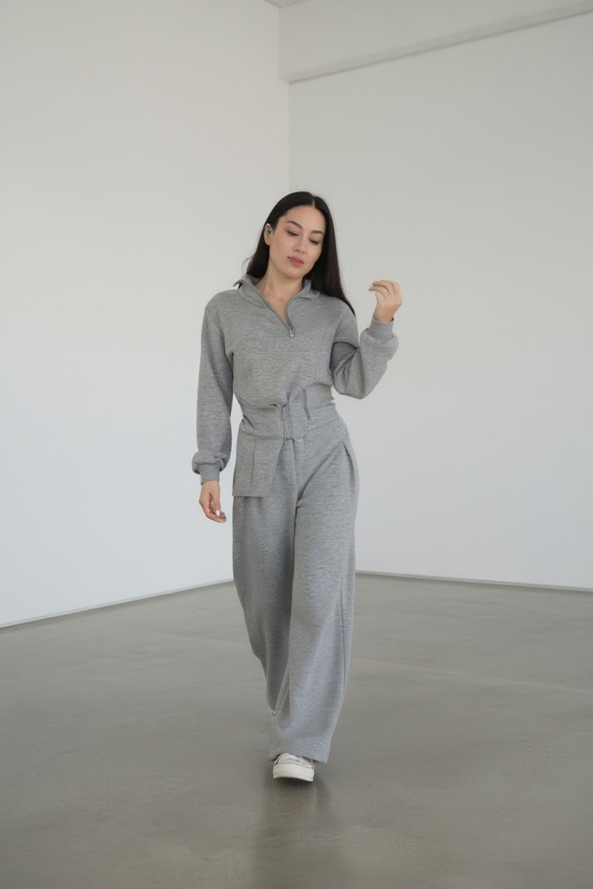 A modern take on luxury loungewear — fluid lines, soft texture, and an elevated silhouette that defines quiet confidence