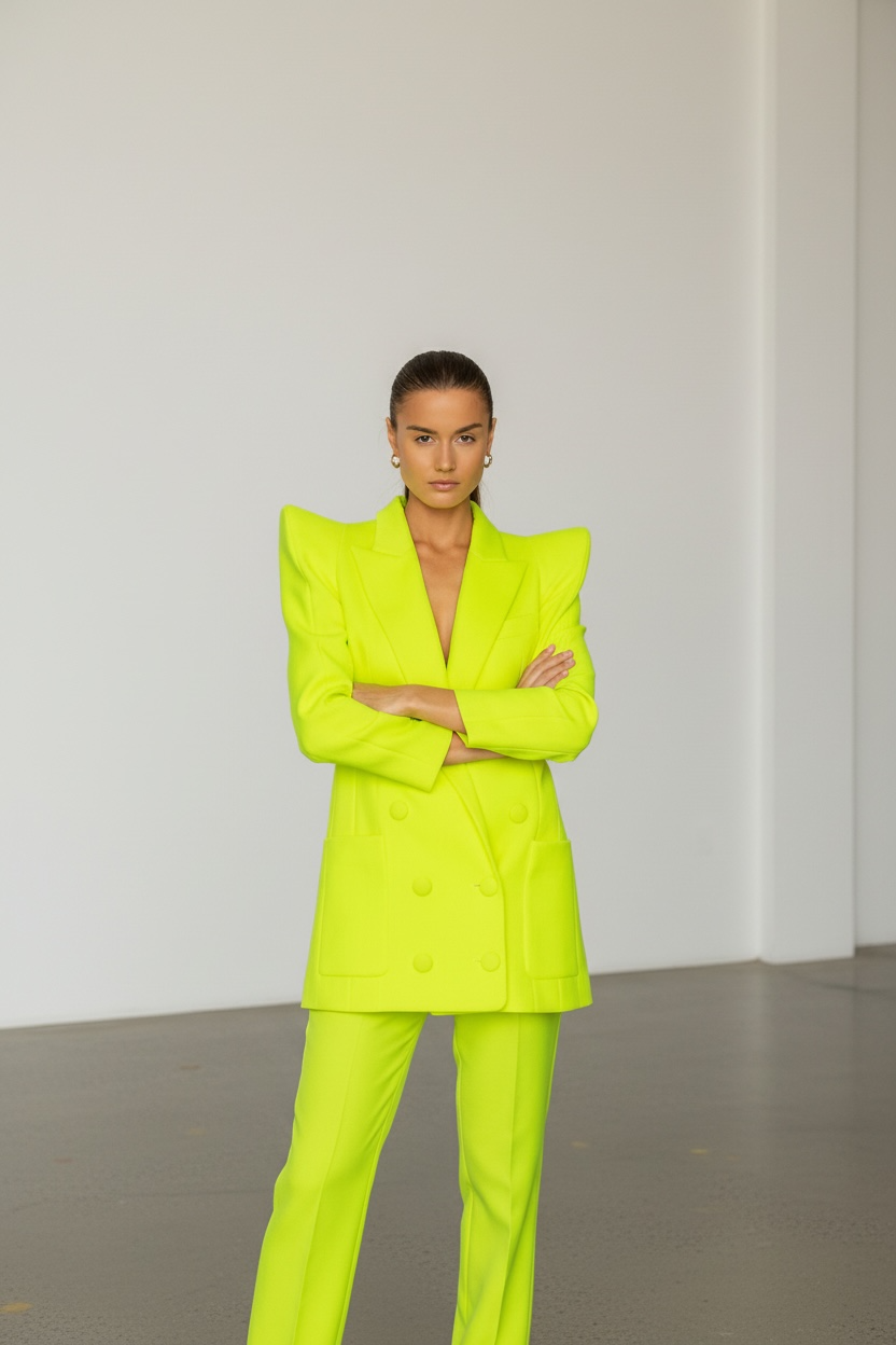 Step into bold confidence with our Neon Power-Shoulder Suit Set.
