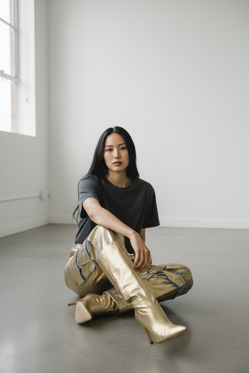 Metallic Cargo Pants – Gold Edition
